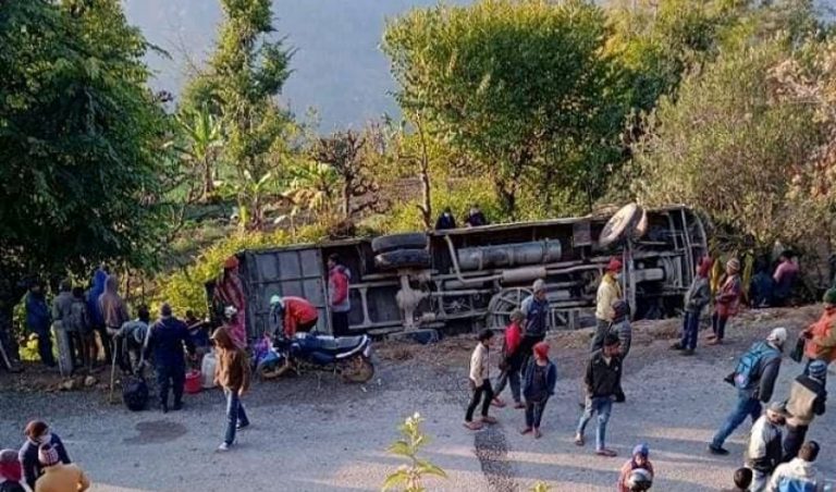 बैतडी, माघ १३ । बैतडीमा ३२ यात्रु सवार बस दुर्घटनामा परेको छ। पाटन–पञ्चेश्वर सडकखण्डअन्र्तगत ना७ख २५७० नम्बरको बस मेलौली नगरपालिका–२ रौतगाउँमा आज बिहान ६ बजे दुर्घटनामा परेको हो। दुर्घटनामा परेर आठ जना घाइते भएका जिल्ला प्रहरी कार्यालयका निरीक्षक दर्शन खड्काले बताए।