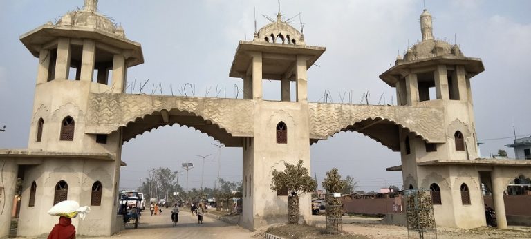 जलेश्वर, १३ माघ: महोत्तरी जिल्लाको मुख्य भन्सार (जलेश्वर भन्सार) नजिकै नेपाल–भारत सीमानाकामा नेपालतर्फ कलात्मक प्रवेशद्वार निर्माण हुँदै ।-तस्वीर ; सञ्जीतकुमार मण्डल-रासस