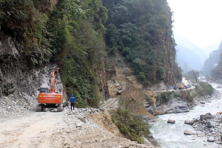 म्याग्दी, १९ माघ । बेनी–जोमसोम–कोरला सडक आयोजनाअन्तर्गत म्याग्दीको अन्नपूर्ण गाउँपालिका–७ महभीरमा चट्टान काटेर सडक विस्तार गरिँदै । यहाँ दैनिक ६ घण्टा यातायात सञ्चालन रोकेर सडक विस्तार भइरहेको छ । तस्बिरः सन्तोष गौतम÷रासस