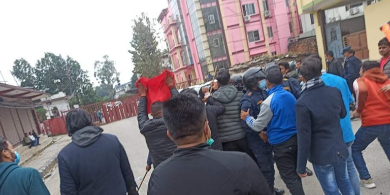 काठमाडौँ, २४ माघ।नेकपा (एमाले)को विद्यार्थी संगठन अनेरास्ववियु र प्रहरीबीच बुटवलमा झडप भएको छ ।सरकारले पेट्रोलियम पदार्थमा गरेको मूल्यवृद्धिको विरोध तथा स्थानीय तहको निर्वाचन घोषणा गर्न माग गर्दै अनेरास्ववियु रूपन्देहीले गरेको प्रदर्शनमा प्रहरी र अनेरास्ववियुका विद्यार्थीबीच झडप भएको हो ।