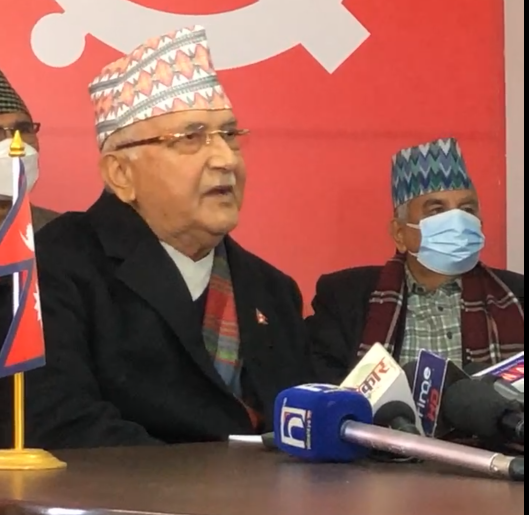 काठमाडौं, २८ माघ । नेकपा (एमाले) का अध्यक्ष तथा पूर्व प्रधानमन्त्री केपी शर्मा ओलीले आफ्नो पार्टी देश, लोकतन्त्र र जनताको पक्षमा पहेरदारको रुपम खडा रहेको बताएका छन् । उनले प्रतिक्रियावादी शक्तिहरुले देशलाई पछाडि लैजान नसक्ने बताए । आज पार्टी मुख्यालय थापाथलीबाट सम्बोधन गर्दै अध्यक्ष ओलीले यस्तो बताएका हुन् ।