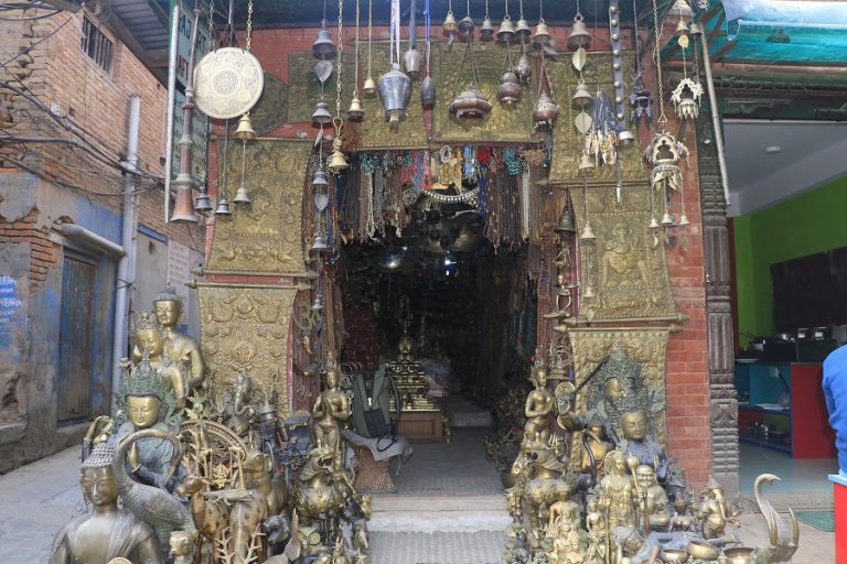 भक्तपुर, ५ फागुन: भक्तपुर न्यातपोल (पाँचतल्ले) मन्दिरस्थित क्यूरियो पसलमा बिक्रीका राखिएका हस्तकलाका सामग्री । कोभिड– १९ का कारण लकडाउन भएदेखि पसलमा व्यापार प्रायः ठप्प भएकाले यस प्रकारको व्यवसाय सङ्कटमा परेको छ ।-तस्वीर : रत्न श्रेष्ठ-रासस
