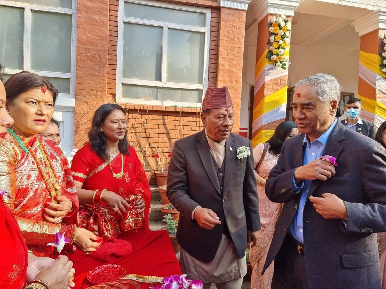 काठमाडौं, ६ फागुन । प्रधानमन्त्री शेरबहादुर देउवा प्रकाशमान सिंहका कान्छा छोरा भाष्कार मान सिंह छोराको जन्तीका रुपमा गएका छन् । देउवा विहानै सिंहको निवास चाक्सीबारी पुगेका हुन् ।