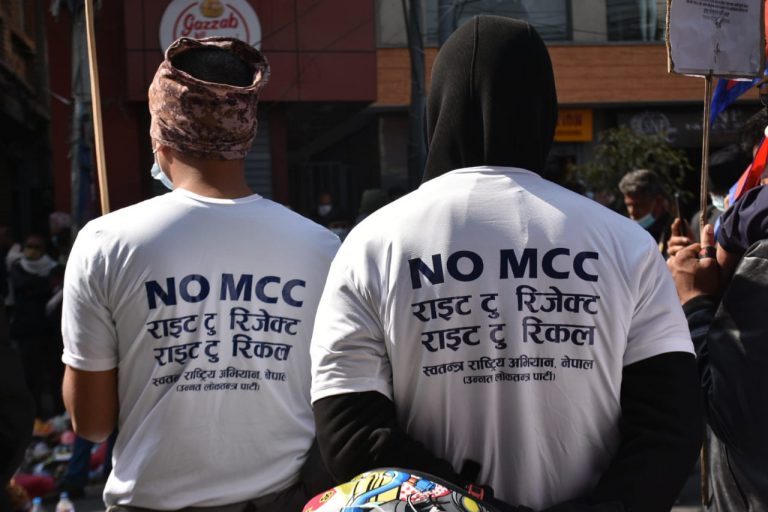 काठमाडौं, ६ फागुन । अमेरिकी सहयोग सम्झौता एमसीसीको विरोधमा आजपनि काठमाडौंमा प्रदर्शन भएको छ । पछिल्लो समय सरकारले एमसीसी सदनमा टेबुल गर्ने तयारी गरेसँगै काठमाडौंमा एमसीसीविरोधी गतिविधि बढ्न थालेको छ ।