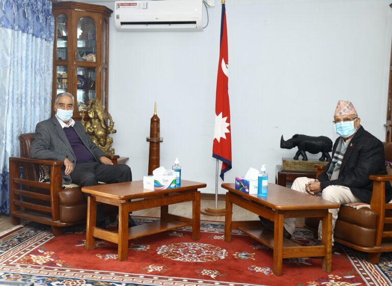 काठमाडौं, १० फागुन । प्रधानमन्त्री शेरबहादुर देउवालाई भेट्न नेकपा एमालेका अध्यक्ष केपी शर्मा ओली बालुवाटार पुगेका छन् । दुई नेताबीच एमसीसीको विषयमा गम्भीर कुराकानी भइरहेको बुझिएको छ ।