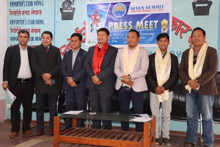 आज (बुधबार) रिपोर्टर्स क्बल नेपालमा पत्रकार सम्मेलन गर्दै ट्रफी र झण्डा सगरमाथा आरोही नर्बिन मगरले विश्वको सर्वोच्च शिखर सगरमाथा लगायत सात महादेशका अग्ला शिखरहरूमा पु¥याउने जानकारी दिएका हुन् । सेभेन समिट फर फिफा वल्र्डकप २०२२ नाम दिएर अभियानको थालनी गरिएको अभियानले जानकारी दिएको छ ।