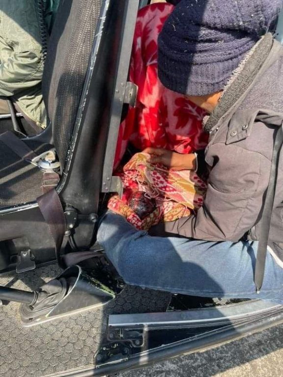 दिलमाया शाही/न्युज कारखाना : जुम्ला, १७ फागुन । नेपाली सेनाको हेलिकाेप्टरमा मुगुकी एक महिलाले शिशुलाई जन्म दिएकी छिन ।