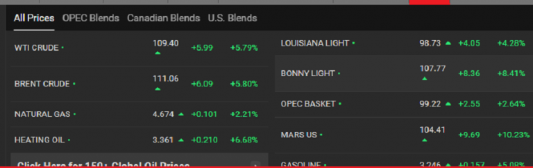 अयल प्राइसका अनुसार ब्रेन्ट क्रुडको मूल्य १११ डलर नाघेको छ । डब्लुटिआई क्रुडको १०९, ओपेक बास्केकटको १००, बोनी लाइटको १०७ डलर पुगेको छ ।