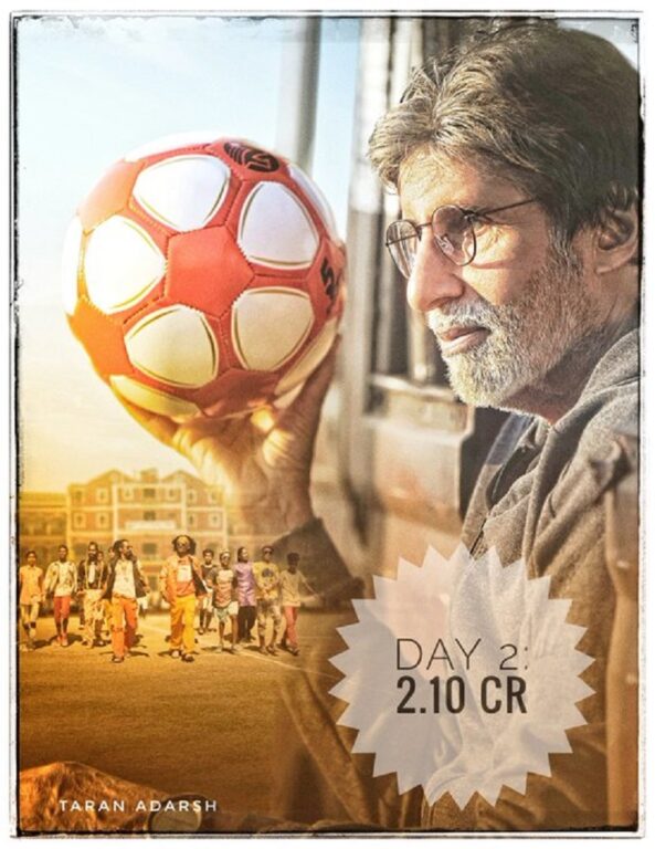एजेन्सी, २३ फागुन । बलिउड अभिनेता अमिताभ बच्चन स्टारर फिल्म ‘झुण्ड’ मार्च ४ मा रिलिज भएको छ । यो बायोग्राफिकल स्पोर्ट्स ड्रामा फिल्मले फ्यान र समीक्षकबाट राम्रो प्रतिक्रिया पाइरहेको छ । फिल्मले रिलिजको दोस्रो दिन अर्थात शनिबार बक्स अफिसमा २ करोड १० लाखको कलेक्सन गरेको छ ।