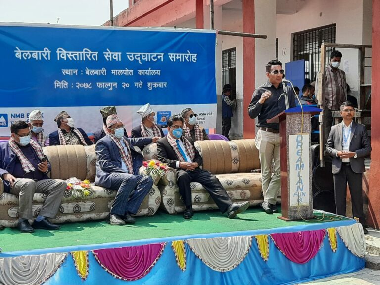 नेपाल सरकार भुमी व्यवस्था, सहकारी तथा गरिवी निवारण मन्त्रालयका सचिव राम प्रसाद थपलियाको प्रमुख आतिथ्यता र नेपाल सरकार भुमी व्यवस्थापन तथा अभिलेख विभागका महानिर्देशक पिताम्बर घिमिरे, एनएमबि बैंक लि.का प्रमूख कार्यकारी अधिकृत सुनिल के.सि.को विशेष आतिथ्यता तथा एनएमबि बैंक लि. प्रदेश नं. १ का प्रमुख उत्सव घिमिरेको सभापत्विमा आयोजित एक कार्यक्रममाझ शुक्रबार मालपोत कार्यालय परिसरमा विस्तारित काउण्टरको विधिवत उद्घाटन भएको हो ।