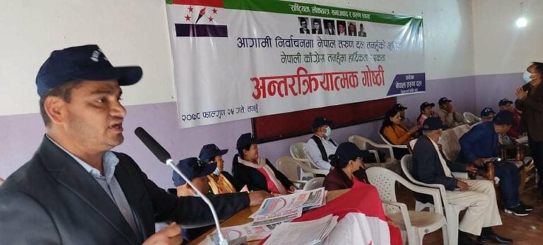 नेपाल तरुण दल, तनहुँले आयोजना गरेको आगामी निर्वाचनमा नेपाल तरुण दल तनहुँको भूमिका, नेपाली कांग्रेस तनहुँमा हार्दिकता र एकता विषयको अन्तरक्रियात्मक गोष्ठीमा बोल्दै नेता पौडेलले तरुण दल कांग्रेसको लागि लड्ने हतियार मात्र नभइ भोलिको नेपाल चलाउने नेतृत्व भएको बताएका हुन् ।
