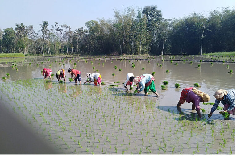 दमक, २६ फागुन । झापाको गौरादहका किसान चैते धान रोप्दै । यहाँका किसान यतिवेला धान रोप्न व्यस्त छन् । तस्बिरः यज्ञराज आङदेम्बे÷रासस
