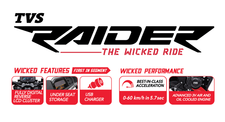 टीभीएस रेडर १२५, आफ्नो आकर्षक डिजाइन, अत्याधुनिक प्रविधि, इन्धन मितब्ययीता, उत्कृष्ट कार्य सम्पादन क्षमता र भारतीय महाद्विपीय सवारी अवस्थाहरुमा स्थिरताका लागि परिचित छ ।