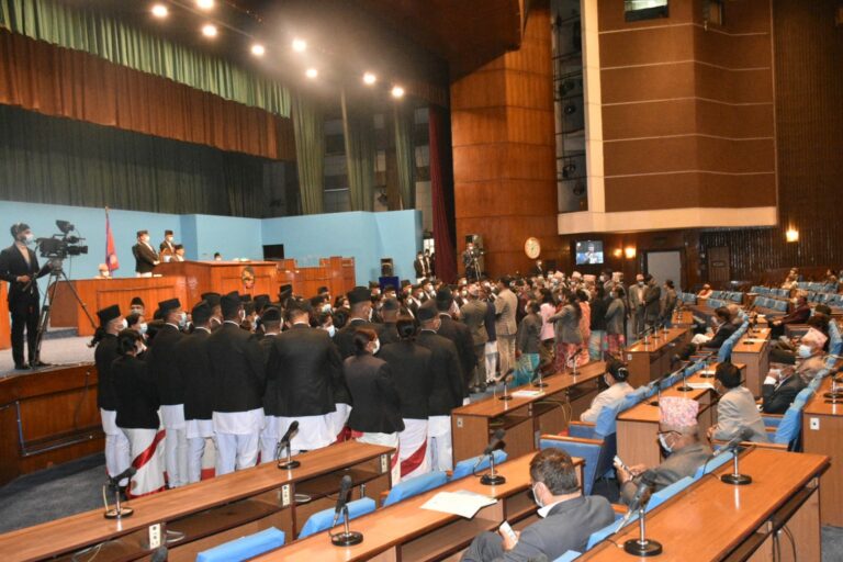 एक महिनाअघि १ फागुनमा देव गुरुङ, पुष्पा भुसाल र जीवनराम श्रेष्ठ प्रस्तावक र ९५ जना सांसद समर्थक रहेर जबराविरुद्ध महाअभियोगको प्रस्ताव संसदमा दर्ता गरिएको थियो । तस्विर : मुकुन्द कालिकोटे, रिपोर्टर्स नेपाल डटकम