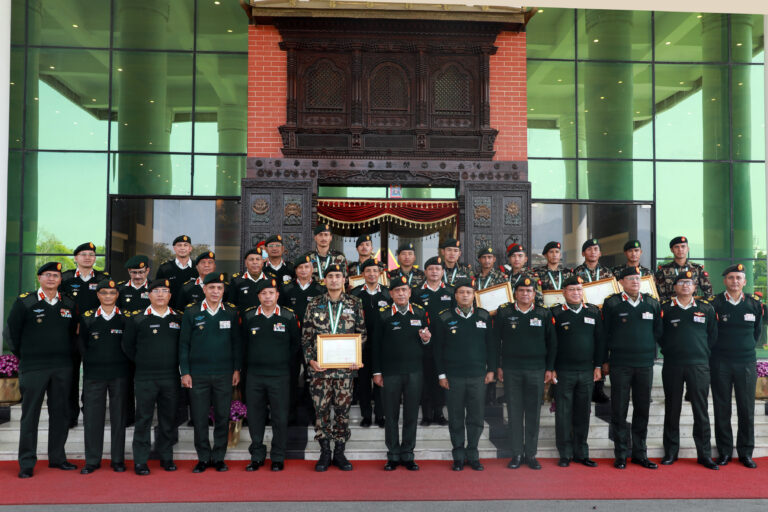 प्रधानसेनापति प्रभुराम शर्माले सैनिक मुख्यालय जङ्गी अड्डामा आयोजित समारोहमा प्रतियोगितामा स्वर्ण पदक विजेता नेपाली टोलीमा सहभागी अधिकृत, पदिक र अन्य दर्जालाई ‘प्रधान सेनापति प्रशंसा पदक’ प्रदान गरे ।