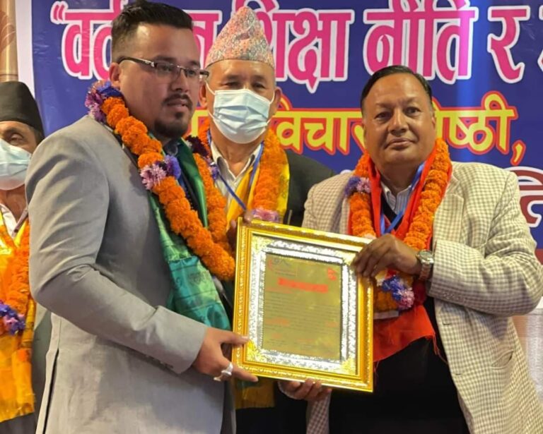 काठमाडौं, १ चैत्र । मनास्लु वर्ल्ड कलेजका प्रमुख एवं प्रवन्ध निर्देशक राजन श्रेष्ठ सम्मानित भएका छन् । फोकस नेपाल संस्थाले शनिबार एक कार्यक्रमबीच श्रेष्ठलाई सम्मान गरेको हो ।