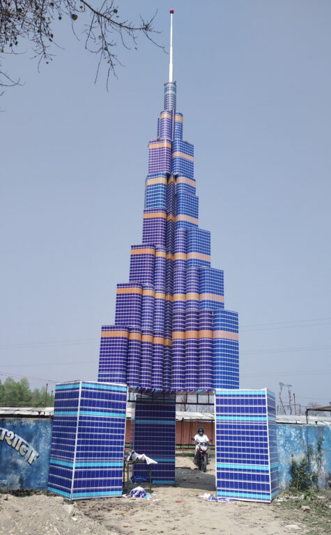 चन्द्रौटा, १ चैत । यही चैत ३ गतेदेखि सुरु हुने १२औँ कपिलवस्तु महोत्सवस्थलमा निर्माण गरिएको बुर्ज खलिफा आकारको प्रवेश द्धार । करिब ४५ फुट उचाइ रहेको यो प्रवेशद्वार निर्माण गर्न भारतको चेन्नईबाट कामदार आएका थिए । प्रवेशद्वारले दुबैमा रहेको बुर्ज खलिफाको आकार लिएको आयोजकले जनाएको छ । तस्बिरः माधव बेल्वासे÷रासस