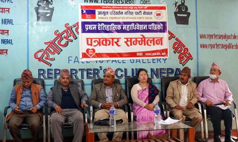काठमाडौं, १ चैत्र । आमूल परिवर्तन मसिहा पार्टी नेपालले प्रथम राष्ट्रिय महाधिवेसन सम्पन्न गरेको छ । गत फागुन २५ गते सम्पन्न भएको महाधिवेशनले भरत गिरीको नेतृत्वमा ७७ केन्द्रीय कार्यसमिति निर्विरोध चयन गरेको आज (मंगलबार) रिपोर्टर्स क्लब नेपालमा पत्रकार सम्मेलन गर्दै जानकारी दिएको हो ।