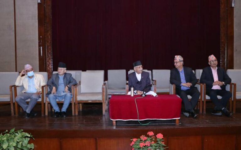 तीन तहको चुनाव नै एमालेले जित्ने दाबी गर्दै ओलीले सबै किसिमका छलछाम र षड्यन्त्र चिरेर बढ्न निर्देशन दिएको बुझिएको छ ।-Photo: Mukunda Kalikote