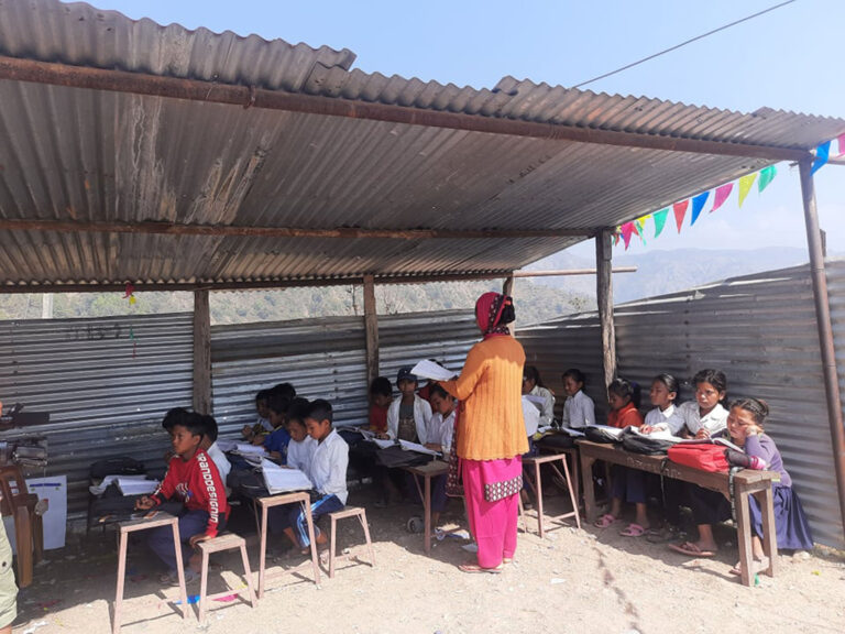 दाङ, ३ चैत । दाङको तुलसीपुर उपमहानगरपालिका–३ स्थित मावि प्रतापपुर अम्वासमा टिनको छाप्रोमा पढ्दै गरेका विद्यार्थी । कक्षा कोठा अभावमा विद्यार्थी यसरी टिनको छाप्रोमा पढिरहेका छन् । तस्वीरः दीपक बोहरा÷रासस