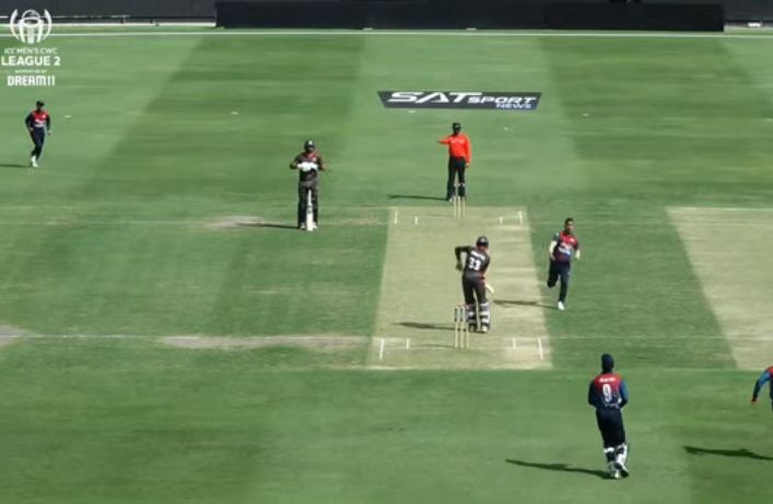सोमपाल कामीले लगातार दुई विकेट लिए । यूएईले ६.१ ओभरमा दुई विकेटको नोक्सानीमा २९ रन बनाएको छ ।