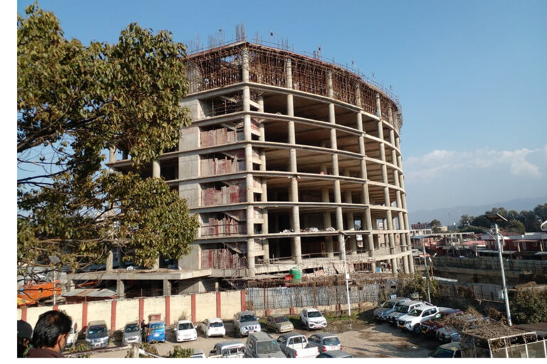 काठमाडौं, ६ चैत । काठमाडौँ महानगरपालिका वडा नं. २८ स्थित पुरानो बसपार्कमा निर्माण भइरहेको भ्यु टावर । भ्यु टावर निर्माणका लागि बसपार्क हटाएको बर्षौँ बितेपनि सम्पन्न हुनसकेको छैन । टावर निर्माण सम्पन्न नहुँदा अहिले राजधानीको मुख्य भागमा बसपार्क छैन । टावर निर्माण सम्पन्न भएपछि यसको तल्लो तलामा बसपार्क बनाइने जनाइएको छ । तस्बिरः पूर्णप्रसाद मिश्र÷रासस