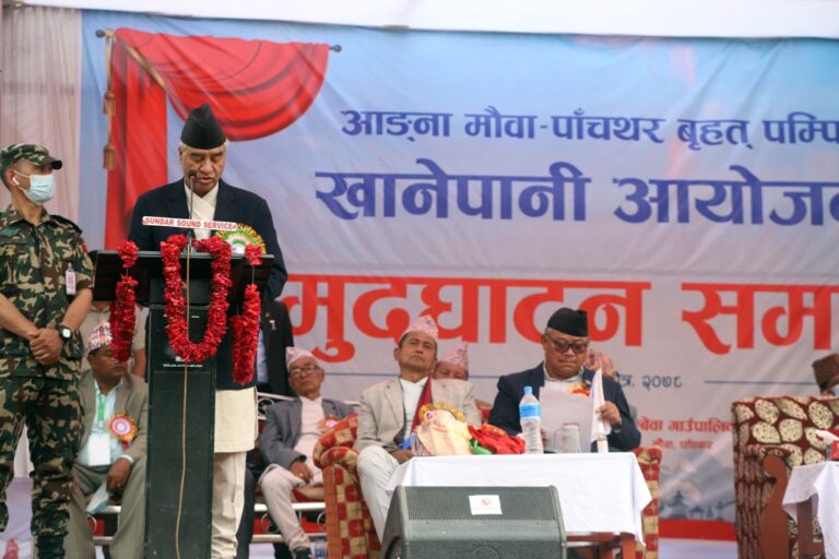 सो अवसरमा प्रधानमन्त्री देउवाले प्रत्येक नागरिकलाई खानेपानी उपलब्ध गराउने संवैधानिक अधिकार तथा दीगो विकासको लक्ष्य प्राप्तिमा यस आयोजनाले सहयोग पु¥याउने बताए। “स्वच्छ खानेपानी र सरसफाइको सुविधा आम नागरिकसम्म पु¥याउनु सरकारको दायित्व हो”, उनले भने, “सहरी र गाउँमा स्वच्छ खानेपानी आपूर्तिको व्यवस्था अझैसम्म सुनिश्चित हुन सकिएको छैन् । खानेपानीकै लागि धेरै समय खर्चनुपर्ने बाध्यता अझै कायमै छ । यस्तो अवस्थाको अन्त्यका लागि स्थानीयस्तरका मुहानमा आधारित साना तथा मझौला आयोजना निर्माणमा जोड दिनुपर्छ ।”