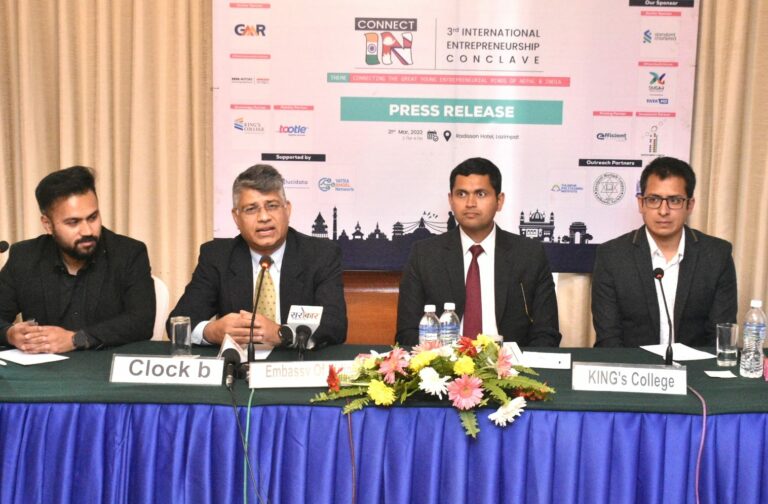 काठमाडौं, ७ चैत्र । युवा उद्यमशीलता प्रवद्र्धन गर्ने उद्देश्यले ‘कनेक्ट इन’को तेस्रो संस्करणअन्तर्गत तेस्रो अन्तर्राष्ट्रिय उद्यमशीलता सम्मेलन यही बुधबार आयोजना गरिने भएको छ । क्लक वि विजनेस इनोभेशन्स् र काठमाडौँस्थित भारतीय दूतावासको सहकार्यमा यही चैत ९ गते सम्मेलनको आयोजना गर्न लागिएको आज यहाँ आयोजित पत्रकार सम्मेलनमा जानकारी दिइयो । सम्मेलनमा ३०० भन्दा बढी नेपाली तथा भारतीय स्टार्टअप, उद्यमी, लगानीकर्ता, विज्ञ, उच्चपदस्थ नेपाली तथा भारतीय अधिकारीको सहभागिता हुनेछ ।