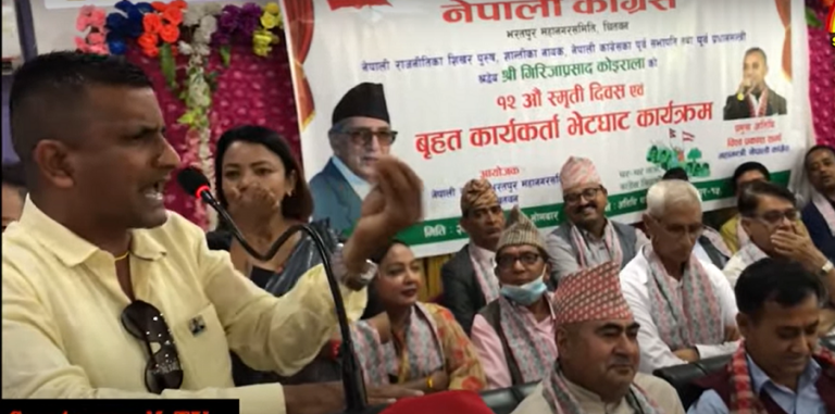 महामन्त्री विश्वप्रकाश शर्माको प्रमुख आतिथ्यमा गिरिजाप्रसाद कोइरालाको १२औं स्मृति दिवसको अवसरमा गरिएको उक्त कार्यक्रममा बोल्दै न्यौपानेले लिङदेन र प्रवक्ता ज्ञानेन्द्र शाहीले कांग्रेसले के गर्छ भन्दै गर्दा कांग्रेसका कार्यकर्ताको शिर निहुरीएको गुनासो पोखे।