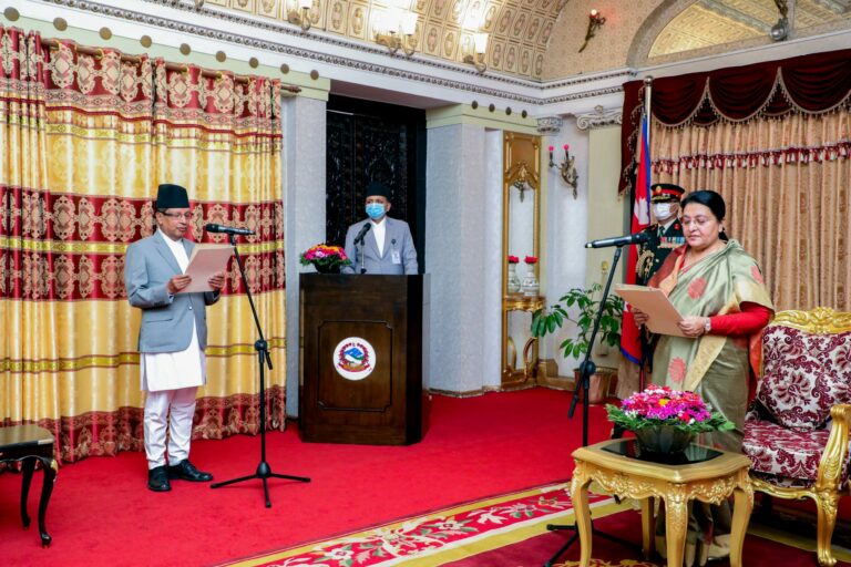 काठमाडौं, ११ चैत । राष्ट्रपति विद्यादेवी भण्डारीले गणतन्त्र भारतका लागि नेपालका आवासीय राजदूत डा शङ्करप्रसाद शर्मालाई आज पद तथा गोपनीयताको शपथ गराएकी छिन् ।