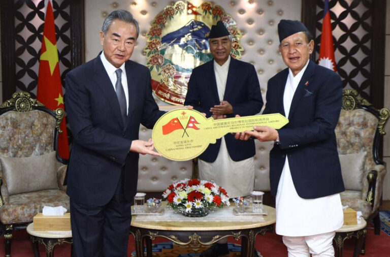 काठमाडौं, १२ चैत्र । चीनले नेपाललाई पोखरा अन्तर्राष्ट्रिय विमानस्थलको चाबी हस्तान्तरण गरेको छ । आज प्रधानमन्त्री निवास बालुवाटारमा नेपाल भ्रमणमा रहेका चिनियाँ विदेशमन्त्री वाङ यीले परराष्ट्रमन्त्री डा. नारायण खड्कालाई चाबी हस्तान्तरण गरेका हुन् ।
