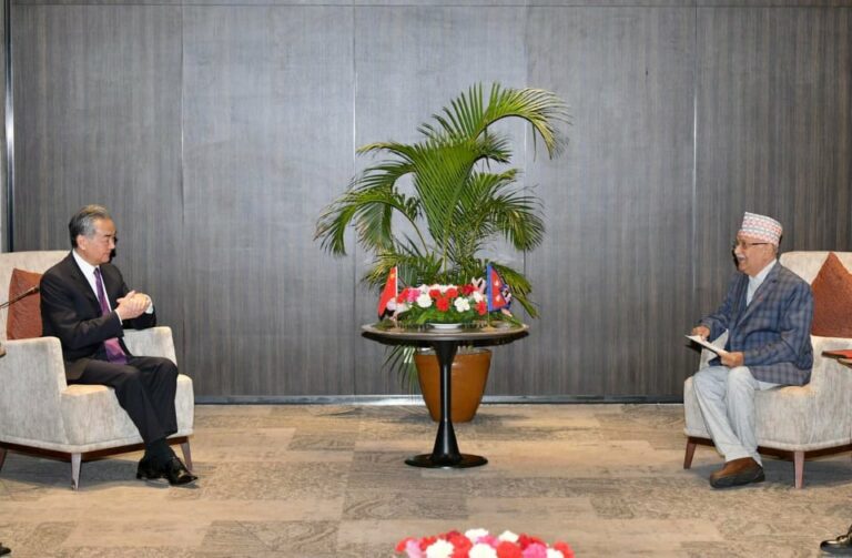 काठमाडौं, १३ चैत्र । नेकपा एमालेका अध्यक्ष केपी शर्मा ओली र चिनियाँ विदेशमन्त्री वाङ यी बीच मेरियट होटलमा भेटवार्ता भएको छ । भेटमा नेपालको पछिल्लो राजनीतिक घटनाक्रमबारे गम्भीर कुराकानी भएको छ ।