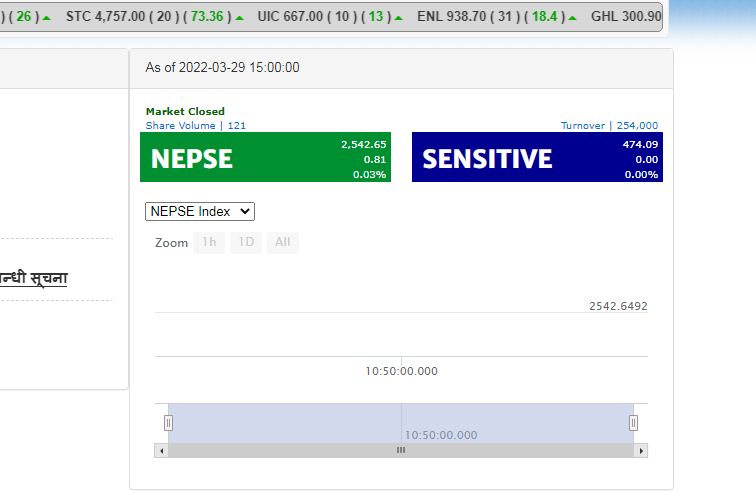 यससँगै सूचक २५४२.६५ को विन्दुमा आएको छ । यस्तै यस अवधिमा २ लाख ४९ हजार रुपैयाँभन्दा बढीको सेयर कारोबार भएको छ ।