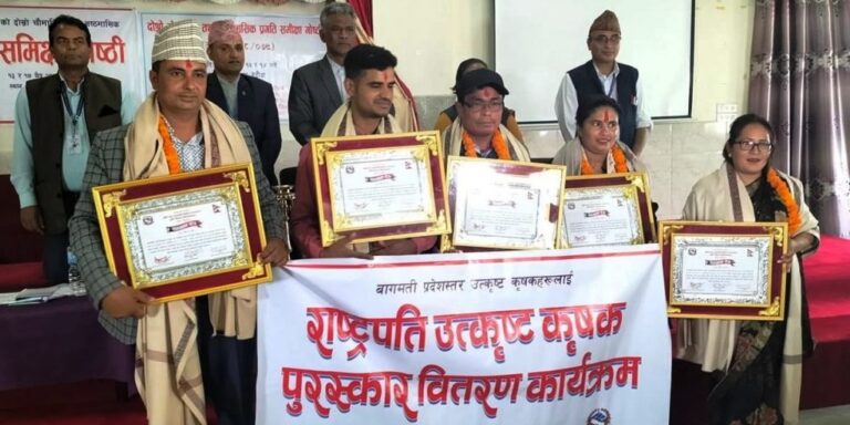 कृषि तथा पशुपक्षीका क्षेत्रमा उल्लेखनीय काम गरेवापत सो सम्मान गरिएको हो । बागमती प्रदेशको कृषि विकास निर्देशनालय तथा पशुपक्षी विकास निर्देशनालयको सोमबार आयोजित चौमासिक प्रगति समीक्षा गोष्ठीमा सो सम्मान गरिएको हो ।