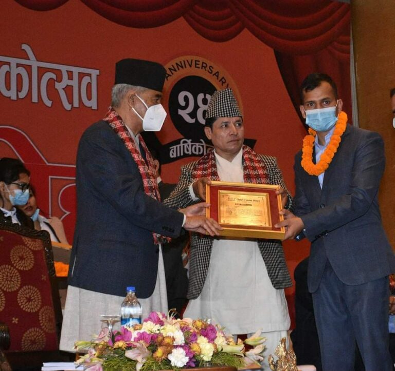 युवा व्यवसायी इञ्जिनियर अशोक धमला प्रधानमन्त्री देउवाबाट सम्मानित