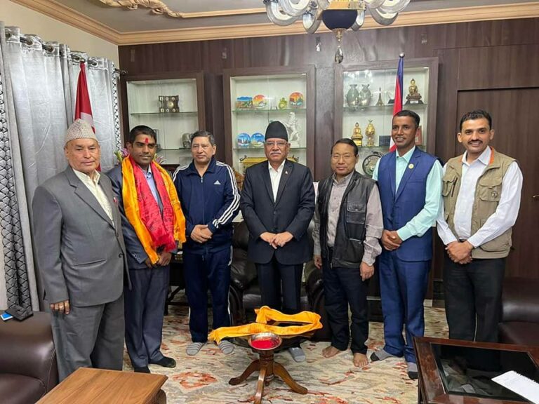 माओवादी केन्द्रका अध्यक्ष पुस्पकमल दाहाल ‘प्रचण्ड’ को निवासमा उनलाई स्वागत गरिएको प्रचण्डका स्वकिए सचिव रमेश मल्लले जानकारी दिए ।