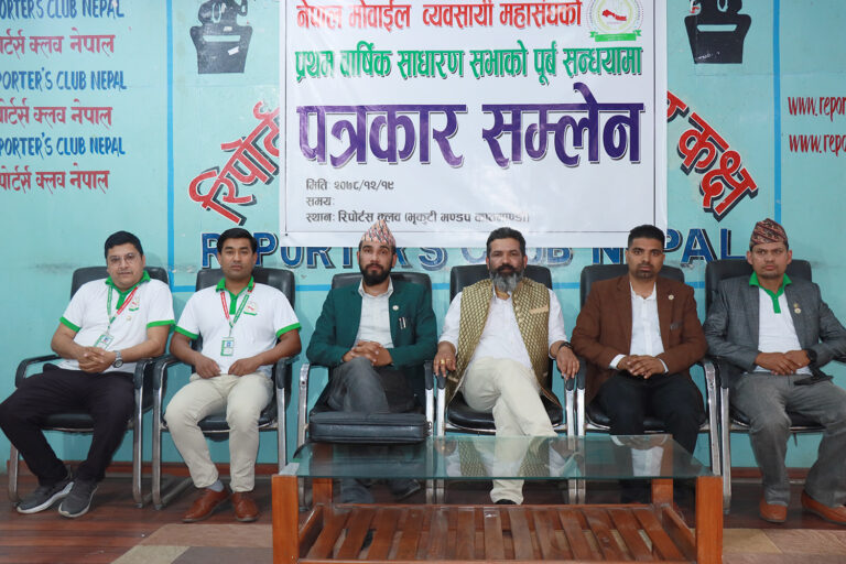 काठमाडौं, १९ चैत । नेपाल मोवाईल व्यवसायी महासंघले प्रथम वार्षिक साधारण सभा भव्यताका साथ आयोजना गर्ने भएको छ । आज (शनिबार) रिपोर्टर्स क्लब नेपालमा पत्रकार सम्मेलनको आयोजना गर्दै महासंघले साधारण सभाबारे जानकारी दिएको हो ।