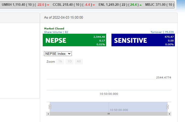 यस अवधिमा ०.१७ अंक बढेर २५४४.४८ विन्दुमा पुगेको छ । तर, सेन्सेटिभ इण्डेक्स स्थिर रहेको छ।