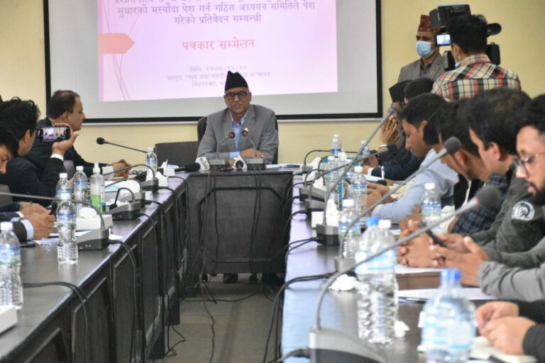 कानुनमा गरिनुपर्ने सुधारका क्षेत्रहरुको पहिचान गरी सोको सुझावसहितको मस्यौदा पेस गर्न गत फागुन २३ गते कानुन न्याय तथा संसदीय मामिलामन्त्री दिलेन्द्रप्रसाद बडूको निर्णयबाट मन्त्रालयको सहसचिव सुशील कोइरालाको संयोजकत्वमा समिति गठन गरिएको थियो । समितिले आज मन्त्री बडूलाई सो प्रतिवेदन बुझाएको हो ।