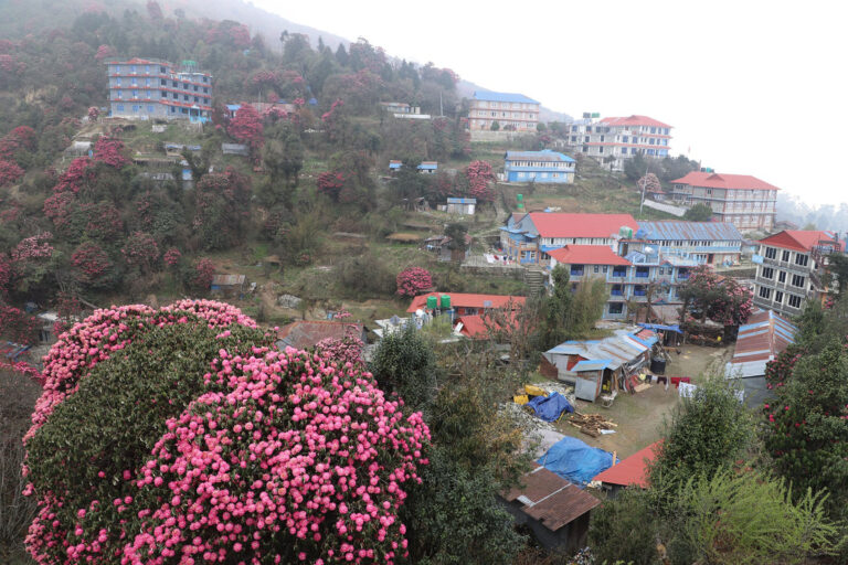 म्याग्दीको अन्नपूर्ण गाउँपालिका–६ स्थित पर्यटकीय गाउँ घोडेपानीको पाखाको जङ्गलमा ढकमक्क फुलेको लालीगुराँस । लालीगुराँसले रङ्गिएसँगै घोडेपानी आकर्षक र मनमोहक बनेको छ ।