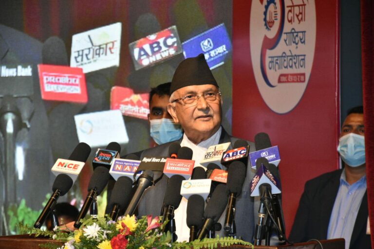 ओलीले गठबन्धनका नेताहरूले योजनामा परेका बाटा, अस्पताल, कलेज बनाउने योजना रद्द गरेर नबनाउने कसम खाएको आरोप समेत लगाए । तस्विरः मुकुन्द कालीकोटे