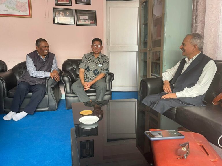काठमाडौं, २४ चैत्र । जनता समाजवादी पार्टी, नेपालका अध्यक्ष उपेन्द्र यादव, संघीय परिषद् अध्यक्ष डा. बाबुराम भट्टराई र वरिष्ठ नेता अशोक राई पार्टी मुख्यालयमा । स्थानीय तहको निर्वाचन नजिकिएसँगै नेतात्रय रणनीति बनाउनको लागि छलफलमा जुटेका हुन् । तस्विर : डा. बाबुराम भट्टराईको फेशबुक