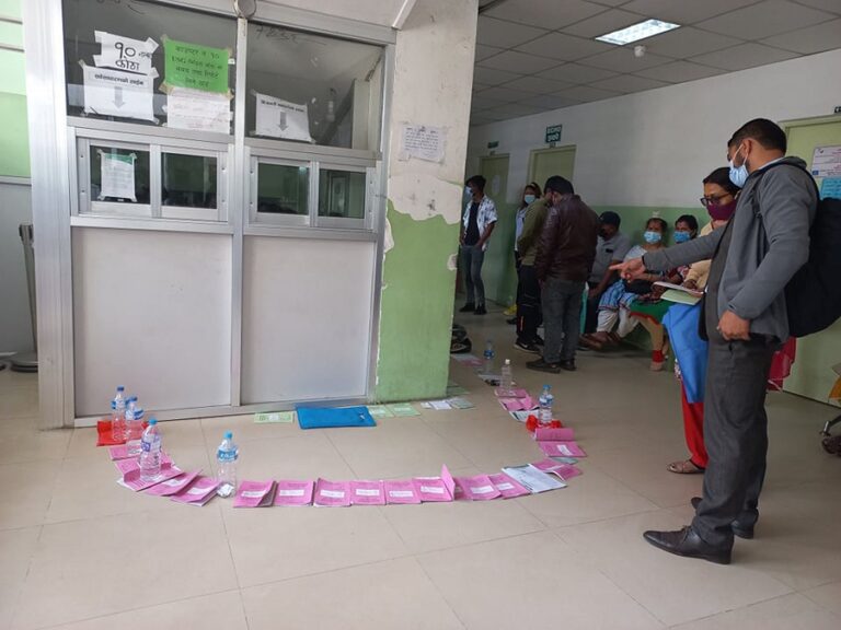 काठमाडौँको मिनभवनस्थित सिभिल सर्भिस अस्पतालमा भिडियो एक्स–रे परीक्षणका लागि लाइनमा राखिएका विरामीका टिकट । बिहान झिसमिसे अध्यारोमा लाइनमा बसेर दिनभरमा पनि पालो नपाउँने विरामीको गुनासो छ ।