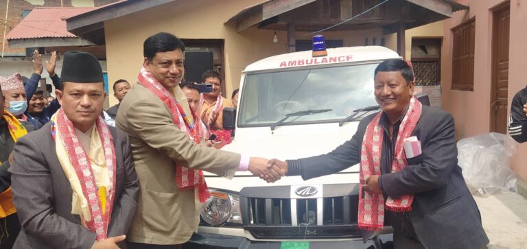 कांग्रेस बागमती प्रदेश सभापति इन्द्र बानियाँद्वारा एम्बुलेन्स हस्तान्तरण