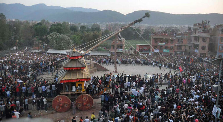 भक्तपुर, बैशाख १ । प्रसिद्घ बिस्केट जात्राको प्रमुख मानिने विश्वध्वजासहितको ५५ हात लामो लिङ्गो आज बिहानसम्म पनि उठेको छैन ।