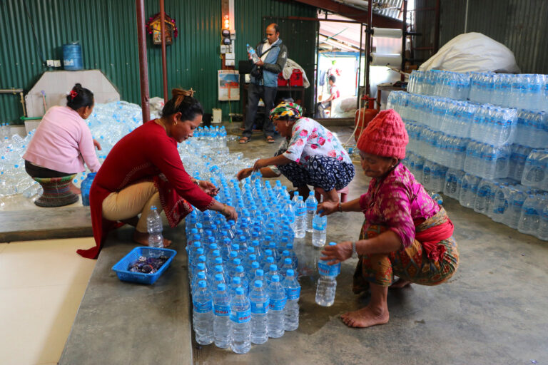 सङ्खुवासभा, २ वैशाख । सङ्खुवासभाको खाँदबारी नगरपालिका–३ मानेभञ्याङमा रहेको हिमाली पानी उद्योगमा काम गर्दै स्थानीय महिला । तस्वीरः भविन कार्की÷रासस