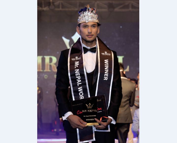 काठमाडौं, ४ वैशाख । नेक्स मोडलद्वारा शनिबार राति काठमाडौँमा आयोजित मिस्टर नेपाल वल्डका विजेता बन्न सफल मोरङ निवासी नुतन श्रेष्ठ ट्रफीको साथमा । तस्बिरः प्रदीपराज वन्त÷रासस