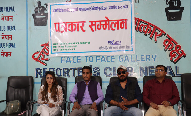 काठमाडौं, ४ बैशाख । राष्ट्रिय दलित मुक्ति जागरण अभियान नेपालले आगामी स्थानीय तहका कार्यकारी पदमा दलित समूदायको प्रतिनिधित्व गराउन दबाब दिएको छ । आज (आइतबार) रिपोर्टर्स क्बल नेपालमा पत्रकार सम्मेलन गर्दै अभियानले दलित समुदायको प्रतिनिधित्व हुनेगरि पालिका प्रमुख, उपप्रमुख, अध्यक्ष, उपाध्यक्ष र वडा अध्यक्षमा टिकट दिनुपर्ने माग गरेको हो ।