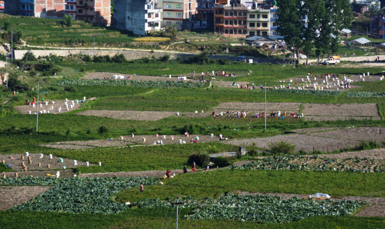 काभ्रे, १० वैशाख । काभ्रेपलाञ्चोकको बनेपा नगरपालिका वडा नं. ५ चण्डेश्वरी खोलाछेउको खेतमा शनिवार आलु खन्दै किसान । तस्वीरः पेमा लामा, रासस