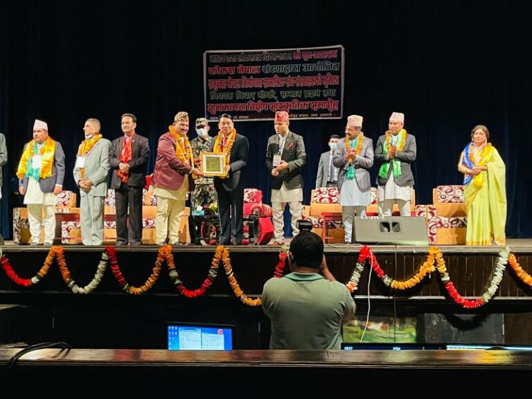 काठमाडौं, बैशाख ११। जनसवाल राष्ट्रिय दैनिकका अध्यक्ष तथा संपादक रामजी बगाले सम्मानित भएका छन । काठमाडौमा शनिबार फोकस नेपालले नव बर्ष तथा लोकतन्त्र दिवस २०७९ को अवसरमा आयोजना गरेको समुन्नत नेपाल निमाणमा सामाजिक संघ सँस्थाहरूको भुमिका” विषयक विचार गोष्ठी तथा शुभकामना बिशेष सांस्कृतिक समारोहमा प्रमुख अतिथि सम्माननीय उपराष्ट्रपति नन्दबहादुर पुनले भव्य समारोहका बीच बगालेलाई सम्मान गरेका हुन् ।